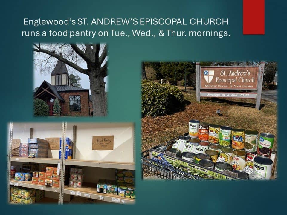 St. Andrew’s Episcopal Church offers a food pantry several mornings each week, providing consistent access to essential food items for individuals and families in need. This ministry serves as a reliable and welcoming resource for neighbors facing food insecurity.