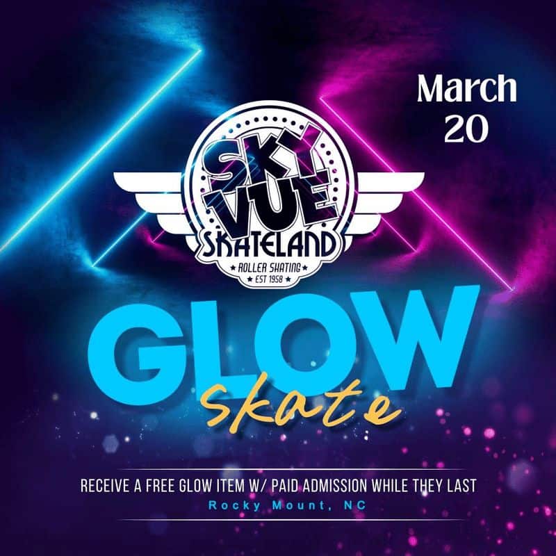 Get ready to light up the rink at our Glow Night on March 20 at Sky-Vue Skateland! Grab your brightest neon shirts, glowing accessories, and anything that shines under the lights — this is your night to stand out on the floor. The music will be pumping, the lights will be glowing, and the energy will be electric. Every skater will receive a free glow stick with paid admission, so you can shine even brighter as you roll.
